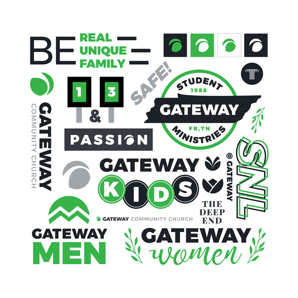 In the middle of 2018, I took a part time position as the Creative Director at Gateway Community Church in Franklin, Tennessee. It’s a medium-sized Nazarene church focused on a blend between internal spiritual growth and external community outreach. My work there started as simply volunteering where I saw areas that could be improved, but as work started to build up, I took on the position to oversee everything visual that the church put out. And those steps started here – a consistent, strong, and simple brand. We built upon the existing logo and created new systems of color and typography designed to unify all materials the church put out.